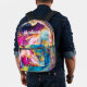 Elegant girly pink turquoise marble art printed backpack