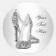 Elegant silver glitter high heel shoe stickers. You can add the text of your choice.