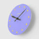 Modern elegant glittering stars on sky blue Wall Clock. Sunrise text can be personalized.