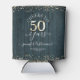 Lovely faux gold glitter confetti highlights on the top and bottom border. All text is adjustable and easy to change for your own party needs. Great elegant 50th birthday template design. blue wood textured background.
