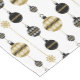 Set your table elegantly with this table runner featuring gold and black round ornaments on a white background. Pair with gold candles or gold centerpiece for an elegant holiday display.