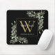 Elegant Gold and Black Monogram Greenery Floral Mouse Pad