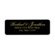 Elegant Gold and Black Wedding Return Address Label featuring name in gold calligraphy font and address in classic serif font style.