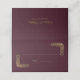 A customizable elegant gold and burgundy ornate lace wedding place card with the bride and groom's names on the back along with their wedding date.