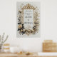 An illustrated ornate gold frame with gold and ivory roses and grey accents, lovely for a fairytale event.