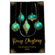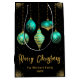 Celebrate the season in style with this elegant black Christmas gift bag featuring five teal blue and gold hanging ornaments, scattered golden stars, and customizable text. Add your family name and year for a personal touch that elevates any holiday gift. Perfect for festive packaging, party favors, or under-the-tree presentation.