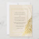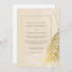 This invitation has both elegance and the wow factor. This design features a silver background, gold and white palm fronds, and classic typography.