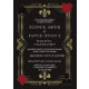 Glamourous Casino Royale and Art Deco 20s themed card design. It features vintage art deco style, a Roaring 1920's old Hollywood faux gold frame, playing cards suits (simulating playing cards), on gold black Art Deco pattern background. Special wording are used as in poker game. On the back faux gold Art Deco pattern, QR code and initials between playing cards suits. Use Personalize tool to add your information. For more, visit please, my Glam Roaring 20's Wedding Collection.