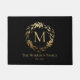 Elegant Gold Black Eucalyptus Wreath Monogram Doormat
