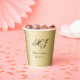 These elegant custom wedding paper cups feature a elegant black calligraphy for your names and wedding date to personalize on a faux gold background. Best of wishes for your wedding and marriage! Designed by Susan Coffey.