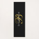 An elegant gold script initial and white name monogram on black. Elegant chic yoga mat for your exercise and meditation.