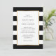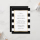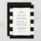 Elegant custom black and white striped wedding invitation with a gold frame. Matching items available.