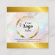 Elevate your brand with this sleek and sophisticated square business card. Featuring a stunning iridescent marble background with soft pastel hues, this design is framed by bold, metallic-look gold borders for a high-end, professional finish.