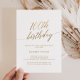 This elegant gold calligraphy 100th birthday invitation is perfect for a simple birthday party. The neutral design features a minimalist card decorated with romantic and whimsical faux gold foil typography.