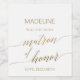 This elegant gold calligraphy matron of honour proposal wine label is perfect for a simple wedding. The neutral design features a minimalist label decorated with romantic and whimsical faux gold foil typography. Customize the wine bottle label with the name of the bridesmaid, and the name of the bride.