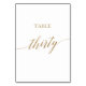 This elegant gold calligraphy table thirty table number is perfect for a simple wedding. The neutral design features a minimalist card decorated with romantic and whimsical faux gold foil typography. The card prints on the front and back (double-sided). Other table numbers in the collection are sold separately.