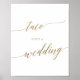 This elegant gold calligraphy "taco 'bout a wedding" sign is perfect for a simple wedding. The neutral design features a minimalist poster decorated with romantic and whimsical faux gold foil typography.