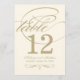 NOTE: Each table number card must be customized and individually added to the shopping cart. Elegant card includes a flourished monogram with champagne gold calligraphy and scroll design accents. Two sided design. To change the background colour (soft white ivory), go to Customize / Edit / Background.