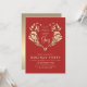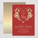 Modern, elegant, beautiful red Peace Love and Joy Christmas holiday party invitation, with rustic gold heart shape wreath.