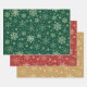 Colourful Christmas wrapping paper sheets in red, green & faux gold.