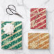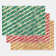 Colourful Christmas wrapping paper sheets in red, green & faux gold.