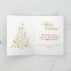 Beautiful Christmas greeting card done in a rich red patterned background. Elegant graphics of a gold tone stylized Christmas tree, with a big golden bow, on top, decorates the green background. Gold tone fancy graphic text reads Merry Christmas, on the inside, along with red and golden yellow custom text ready for you to personalize. Lovely holiday greeting card sure to delight the receivers.