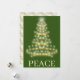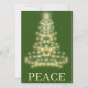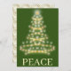 Keep in touch with the ones you love this holiday season by sending them this card. This Christmas card design features a festive green background with a stylized gold Christmas tree with a star on top. The text on the front says "PEACE." Put your own greeting or keep the provided popular and trendy text for your convenience.