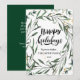 Elegant Gold Confetti Pine Foliage Modern Script Holiday Card