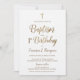 Elegant Gold Cross Simple Baptism and 1st birthday Invitation