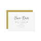 This chic save the date card features gold cupids either side of your names and your save the date details set in classic elegant typography.