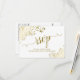 These beautiful RSVP cards will make it easy for your guests to respond to your wedding invitation. They feature an elegant design with gold script calligraphy on a white background, and lacy golden floral curls and swirls in the corners. The back of the card is a form for your guests to fill out and return indicating if they can attend or not, the number of guests they're bringing, and their choice of meals. There is also space to list your website URL including the QR code so your guests can respond online if it's more convenient for them.