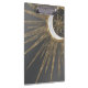 This beautiful, mystical, sun and crescent moon mandala universe theme aesthetic design is perfect for home decor, everyday wear, or special events enchanted decorations. A pretty, whimsical gold sun and moon mandala design, featuring flowers and leaves doodles, stars, dots, diamonds, circles, triangles, and mermaid scale geometric shapes, with a crescent stage glowing moon, a mandala flower star, made with faux gold foil, on a dark grey nebula, galaxy stars, and a grey gradient background.