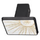 This beautiful, mystical, white, gold sun and crescent moon mandala universe theme aesthetic design is perfect for home decor, everyday wear, or special events enchanted decorations. A pretty, whimsical white, gold sun and moon mandala design, featuring flowers and leaves doodles, stars, dots, diamonds, circles, triangles, and mermaid scale geometric shapes, with a crescent stage glowing moon, a mandala flower star, made with faux gold foil, on white background.