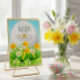 Key Features: Textured gold-style frame, realistic daffodil illustrations, and a decorative green bow.