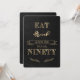 Elegant Gold EAT DRINK and be NINETY Birthday card design. It features elegant faux gold "EAT drink AND BE NINETY" typography, ornaments, on a black textured background. Use Customize tool to add your info.For more, please, visit my EAT DRINK BIRTHDAY PARTY Collection.