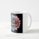 A beautifully designed Eid Mubarak coffee mug featuring luxurious gold calligraphy on a cosmic splash of blue and red watercolor with golden stars. The perfect combination of elegance and festivity, making it ideal for greeting cards, and decorations. Celebrate Eid in a stylish way!