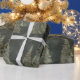 Beautiful faux gold fairy lights forming perfect groups of three festive pine trees.