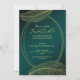 This elegant invitation card features delicate gold feather illustrations paired with a refined oval geometric frame on a deep green background, creating a luxurious and timeless design suitable for sophisticated celebrations. The graceful gold feathers add a sense of elegance and softness, while the oval frame provides a balanced focal area where event details can be beautifully displayed.