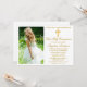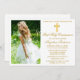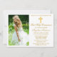 Modern Elegant Gold First Holy Communion Invitation with Cross and Photo.
