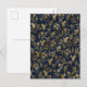 Elegant Gold Flowers Blue Botanical Holiday Postcard