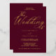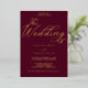 Perfect for a timeless celebration, this gold foil wedding invitation features a rich burgundy background adorned with graceful swirls, delicate flourishes, and exquisite hand-lettered gold foil typography, all elegantly framed in a luxurious foil-stamped border.