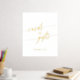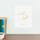 This elegant gold foil calligraphy cards and gifts foil print is perfect for a simple wedding or bridal shower. The neutral design features a minimalist sign decorated with romantic and whimsical luxurious pressed gold foil typography. The line of text at the bottom of the sign can be personalized with the date, the names of the bride and groom, or a short message like "Thank you". This sign can be used for a wedding or any event or party.