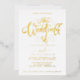 This refined wedding invitation features elegant gold foil calligraphy, perfect for a simple yet sophisticated celebration. With its neutral design and romantic, whimsical typography, it exudes timeless elegance. Customizable in a variety of colours to match your wedding's style.