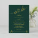 This sophisticated gold foil wedding invitation is ideal for a timeless celebration. Featuring intricate swirls and delicate flourishes, the design showcases exquisite hand-lettered gold foil typography against a rich emerald green background, blending modern elegance with classic charm.