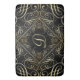 Elegant faux gold foil looking effect scrollwork script on black. Add an initial to this Hollywood Regency inspired glamour piece.