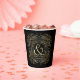 Elegant Gold Foil Look Scrollwork Script on Black Paper Cups