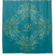 Elegant faux gold foil looking effect scrollwork script on teal blue green. Add an initial to this Hollywood Regency inspired glamour piece.