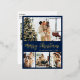 Élégante calligraphie Minimaliste Marine et Gold Foil Script 4 Collage photo Joyeux Noël Carte postale. Ce modèle festif, mimimaliste, fantasque quatre (4) cartes de vacances photo présente un joli collage photo. Le texte de salutation "Joyeux Noël" est écrit dans une belle main lettrage de script de brosse type de police en or sur arrière - plan bleu marine. À l'envers avec modèle texte de salutation avec un petit coeur gribouillant sur blanc et un modèle photo. Jolie carte de voeux pour votre famille et vos amis pendant la période de Noël.