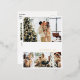 Elegant Calligraphy Minimalist Gold Foil Script White 4 Photo Collage Merry Christmas Holiday Card. This festive, mimimalist, whimsical four (4) photo holiday card template features a pretty photo collage and says „Merry Christmas”! The „Merry Christmas” greeting text is written in a beautiful hand lettered swirly swash-tail font type in gold on white colour background. On the reverse side with greeting text template with a little heart doodle on white and one horizontal photo template. Pretty greeting card for your family and friends in Christmas Holiday season.