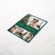 Elegant Calligraphy Minimalist Green and Gold Foil Script 4 Photo Collage Merry Christmas Holiday Postcard. This festive, mimimalist, whimsical four (4) photo holiday card template features a pretty photo collage. The „Merry Christmas” greeting text is written in a beautiful hand lettering brush script font type in gold on green colour background. On the reverse side with greeting text template with a little heart doodle on white and one photo template. Pretty greeting card for your family and friends in Christmas Holiday season.